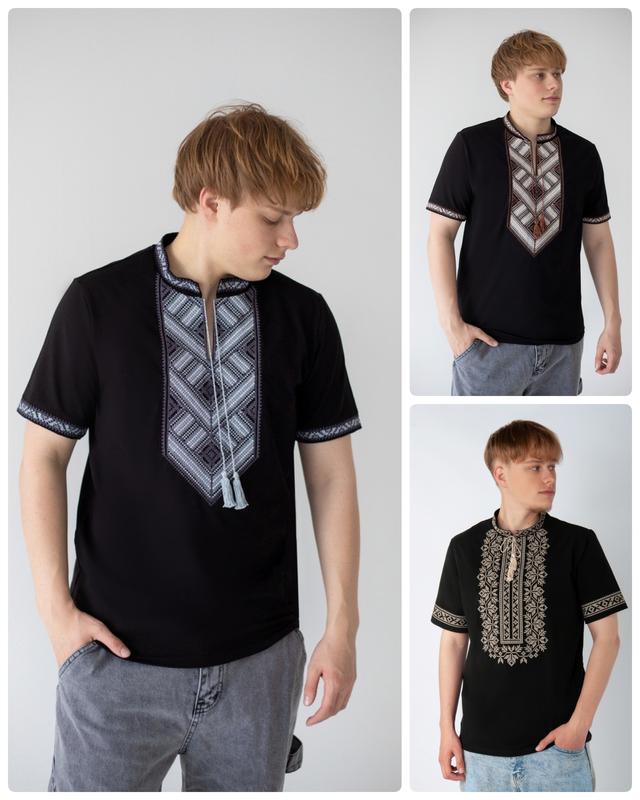 Вышиванка для мужчин с коротким рукавом, вышитая трикотажная футболка