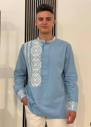 Вышиванка мужская голубая