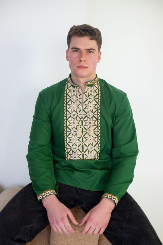 Мужская вышиванка рубашка зеленая вышитая очень красивая для мужчин сильная вышиванка 351