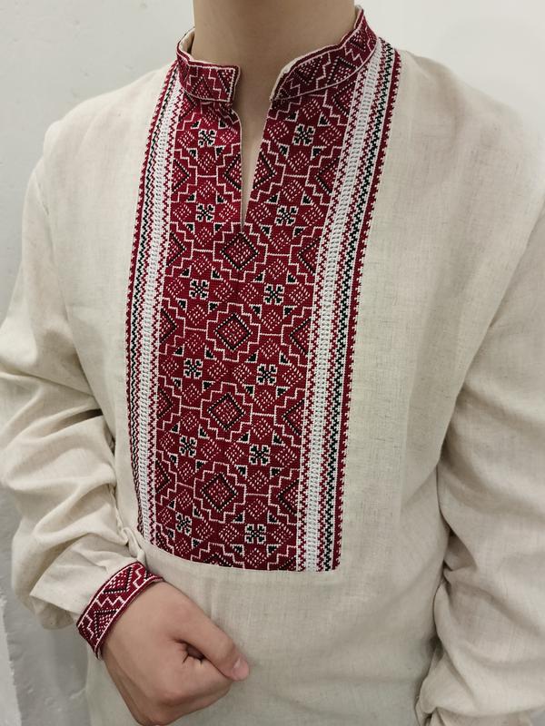 Вышиванка мужская качественной ручной работы на домотканном льне. Ширина по грудям 64 см Длина рукава 68 см