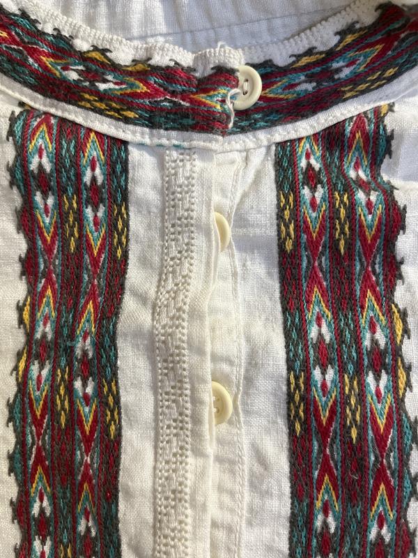 Старовинна чоловіча вишита сорочка , заміри на фото , маються дефекти у вигляді дрібних дірочок ( на фото показала ) . Звертайтеся , на додаткові питання відповім , багато в наявності старовинних рушників і сорочок з регіону Полтавщина…