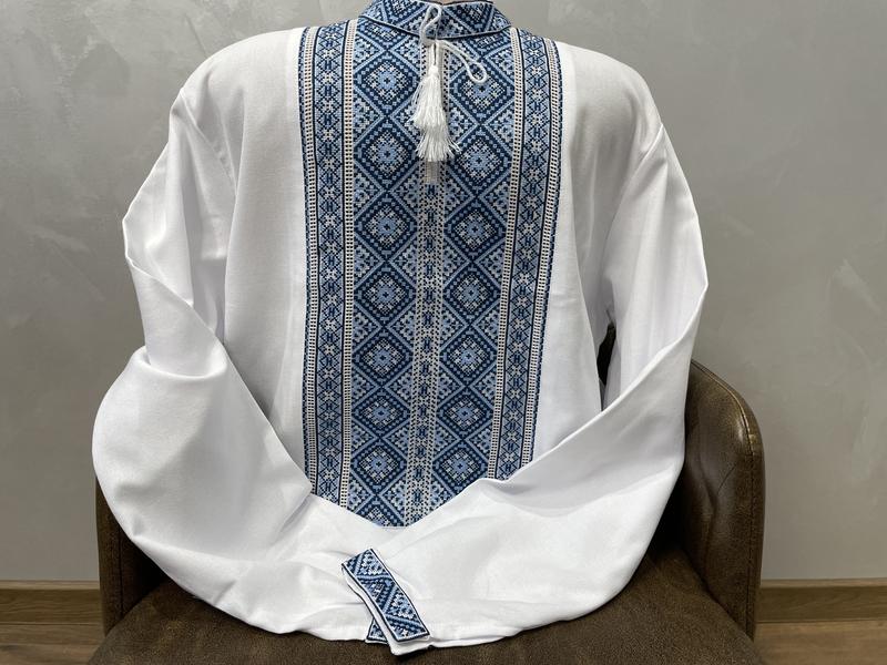 Стильна чоловіча вишиванка ручної роботи на білому полотні. ч-2109