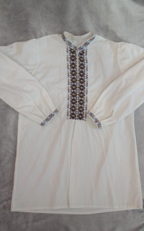 вышиванка мужская (подростковая) на длинный рукав застежки-затраски ручная работа, вышитая нитками DMC в пользовании было два раза (син быстро вырос)
