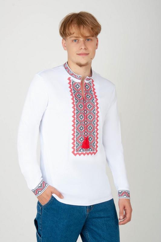 Мужская вышитая рубашка с длинным рукавом, выполнена из полотна "Интерлок". Такая ткань приятная и нежная на ощупь, имеет гладкую поверхность с обеих сторон – вещи получаются удобные и мягкие, в которых будет удобно ходить/сидеть. Данная модель прямого кроя, имеет воротник-стойку, рукава с манжетами на застежке "Кнопки", воротник, манжеты и перед рубашки украшен вышитым орнаментом. Полотно: интерлок Состав: 100% хлопок. Вышитый орнамент: машинная вышивка Рекомендации по уходу: стирать при температуре не более 30°C. Допускается стирка в режиме "ручная" или "деликатное", вышивку гладить только по изнаночной стороне. Изделие может дать усадку. Длина изделия 76 см Ширина изделия по груди 57 см Длина рукава 70 см
