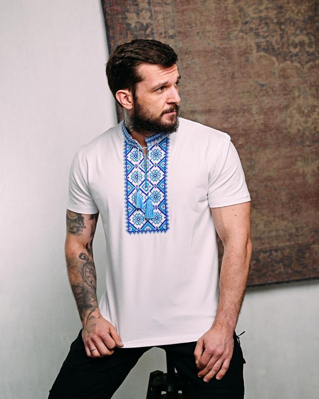 💙 невероятная вышиванная мужская рубашка белая голубая вышивка белая футболка вышиванная...
