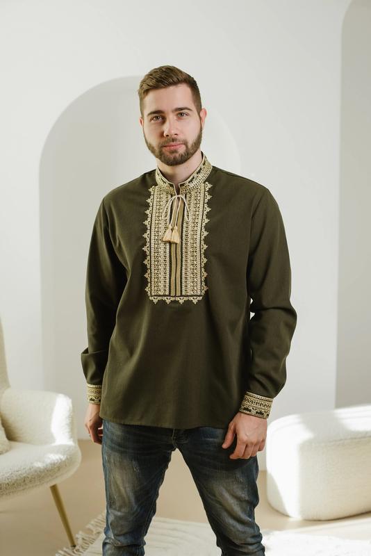 Чоловіча вишита сорочка вишиванка хакі льон Замовити можна через шафу або післяплатою (оплата при отриманні) Сучасна чоловіча вишиванка стане чудовим доповненням будь-якого гардеробу. Розмірна сітка остання фото, із задоволенням допоможемо підібрати ідеальний розмір! Розмір: S, M, L, XL, XXL Тип тканини: льон Склад тканини - 40% льон, 30% бавовна, 30% віскоза Вишивка: машина, гладдю Розмірна сітка (заміри по виробу)