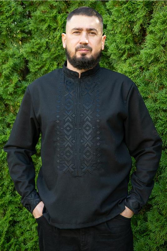 Вышиванка мужская, черная тканина- льон размер S M L XL 2XL размер 3XL 4XL 5XL + 150 грн❗