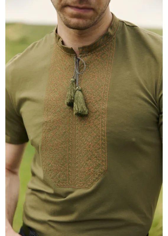 Футболка вышиванка мужская(139) – это яркая и удобная одежда, которая превращает повседневность в особые моменты. Это практичный предмет гардероба, который можно носить, и на праздник, и на каждый день, сужать с джинсами, пиджаком, надевать в офис или на посиделки с друзьями. Народные вышитые орнаменты и принты с национальной символикой дополнят ваш будничный образ яркими красками. Мужская футболка с орнаментами и национальной символикой. Украинская вышиванка – это феномен моды. Она подходит каждому мужчине, всегда красиво садится по фигуре и подходит для многих событий. Футболка как более простая и практичная альтернатива вышитой рубашке сохраняет эти черты. Мужчины, которые выбирают вышитые футболки, выглядят стильно и модно. Вышитые футболки для мужчин отличаются лаконичностью и сдержанностью по сравнению с женскими – они передают взвешенность, серьезность мужского характера. Вышивку размещают на манжетах, воротнике и на груди, а вот принты с патриотическими мотивами могут занимать почти всю площадь футболки. Среди модных трендов – модели, в которых вышивка размещается только с одной стороны. Обычно для вышивки используется один-два цвета, среди наиболее распространенных – сочетание красного и черного, красный, черный, синий, белый. Очень популярные футболки, созданные в украинских национальных цветах – синем и желтом, дополненные этническими орнаментами. Вышитая футболка мужская – это как раз тот вариант, с которым никогда не нужно думать, что надеть. Выбираете ее, и вопрос решен. Вы всегда готовы к вечеринке, знакомства с родителями любимой девушки, встречи с друзьями. ее можно соединить с деловым костюмом, и этнический орнамент добавит строгому образу патриотизма, или с джинсами и кроссовками – для неформального look.
