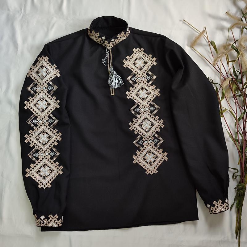 Вышитая рубашка мужская ◽Цена 1150 грн ◽ Тканина: габардин ◽Цвет: черный ◽Размер: L (46-48) ◽Замеры: ПОГ 53 Длина 70 Длина рукава 65 🚨📍возможно изготовление по заказу