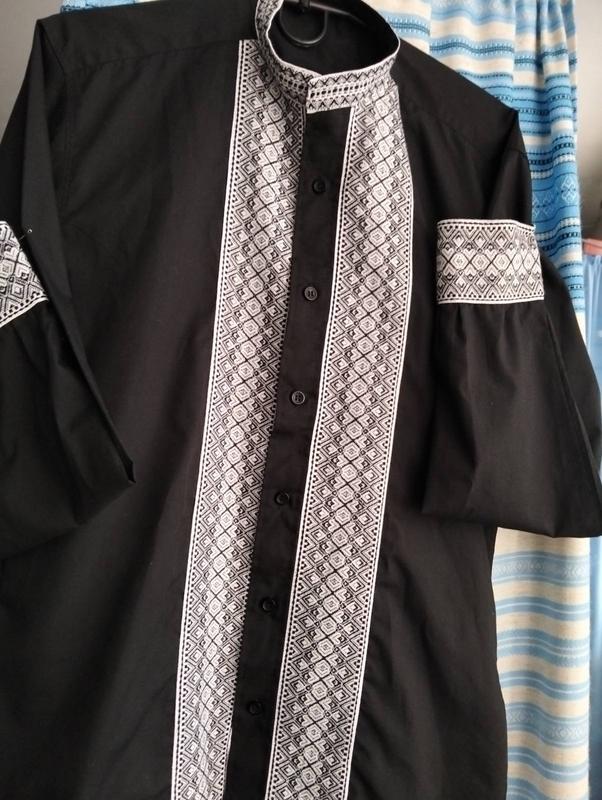 Чоловіча вишиванка в гарному стані. Розмір 48. Колір чорний, вишивка машинна гарно поєднана. Рукав довгий. Заміри: плечі 47 см, рукав 61 см, довжина 74 см, обхват 110 см