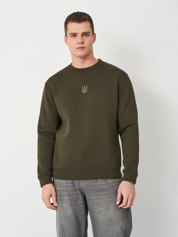 Мужская кофта цвета хаки с вышитым трезубом свитшот мужской для военной патриотической оде...