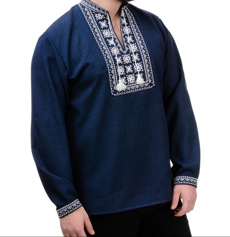 Вышиванка мужская темно - синяя
