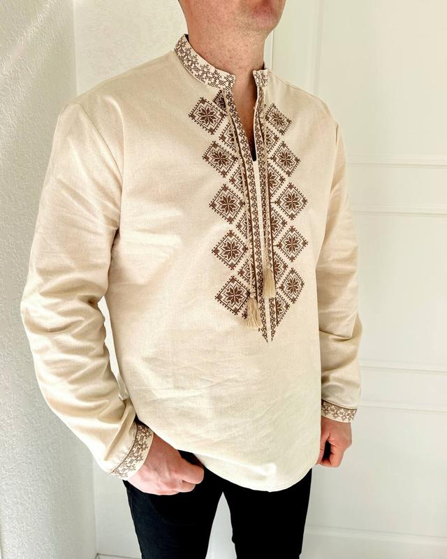 Вышиванка мужская Модель 5013 Производитель Турция 🇹🇷 Размеры S, M, L, XL Тканина котон 80%, 20% поліестер Цвета: бежевый, черный Замеры S НОГ - 56 см Длина - 77 см Длина рукава от горловины - 79 см М НОГ- 59 см Длина- 77 см Длина рукава от горловины - 79 см L НОГ- 62 см Длина- 79 см Длина рукава от горловины - 80 см XL НОГ- 63 см Длина- 79 см Длина рукава от горловины - 80 см Погрешность измерения +~1см