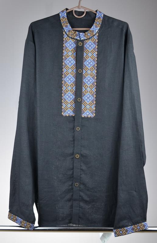 Чоловіча вишита сорочка (арт. 90069/1981). Лляна тканина + машинна вишивка хрестиком. Довгий рукав з вишитим манжетом. Розмір на бірці XXL. ЗАМІРИ: ПОГ 64 см, ПОТ 64 см, ПОБ 64 см, довжина рукава 70 см, довжина сорочки 81 см, плечі 49 см, окружність шиї 49 см.