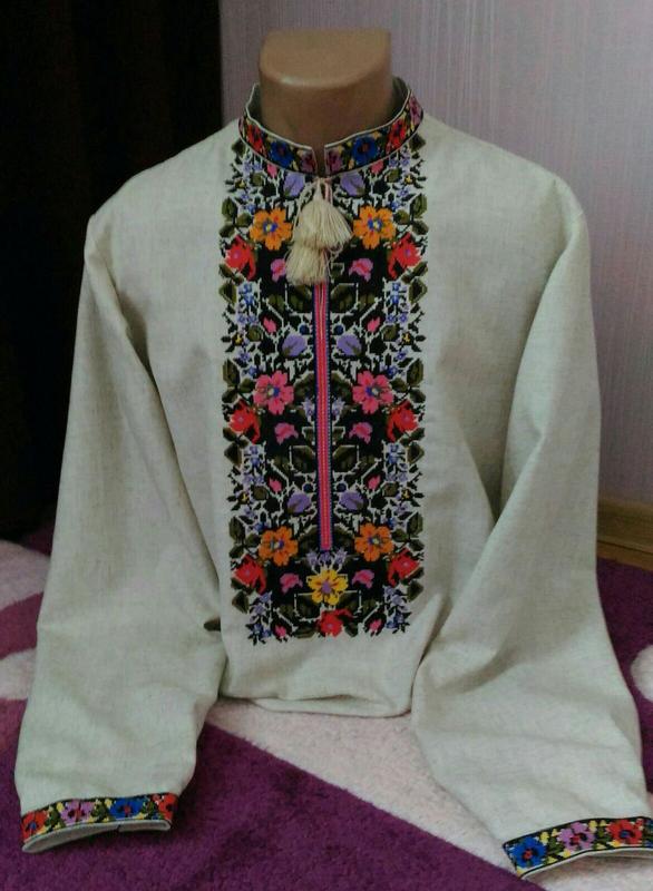 Чоловіча вишиванка "Подих літа ".Машинна вишивка хрестиком.Ідеальна робота,подотно онікс 46р. Довжина вишиванки 70см. Довжина рукавів з монжетом-70см Розмір коміра-41см Ширина плеча - 45см Обхват грудей-112см Заходьте на мою сторінку і вас чекає великий вибір жіночих і чоловічих вишиванок🙂😊😉 Також вишиваю на замовлення любий потрібний вам розмір за 10-14днів.