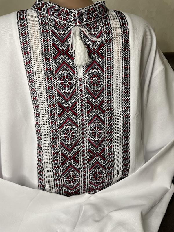 Поздравляем, Вас, это магазин вышиванок "Савчук Вышивка"! У нас Вы можете приобрести дизайнерские и стильные вышиванки ручной работы на каждый день. Перед заказом спросите есть ли размер налицо!!! Размер указывайте в комментариях!!! Есть возможность заказать украинские мужские размеры по размеру воротника (обхват шеи) в сантиметрах: 41-43 (размерная сетка на фото). На фото вышиванка 43 размера, на объеме в груди - 126см. Данная рубашка прекрасно подходит, как для праздничной так и повседневной одежды, брюк, джинсов. Вышивка на рубашке – оберег для человека. Стиль вышивки – крестик. Вышивка – ручная. Ткань – домотканое полотно. Цвет ткани – белый. Цвет вышивки – гуцульский. Длина рукава – длинный. Стирка – машинная автомат или ручная не более 40 градусов. Нити – водостойкие. Глажка – лучшее: после стирки, еще немного влажную рубашку погладить и вывесить. Мы уверены, Вы оцените практичность и богатство украинской вышиванки. Приятных и удачных покупок