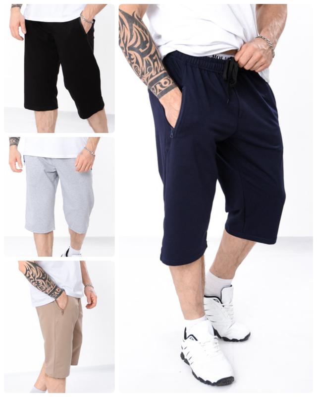 Полотно: двонитка однотонна Состав полотна: 80% хлопок, 20% полиэстер Бриджи мужские свободного кроя, выполненные из двухнити. Этот материал устойчив к появлению катышек, со временем не меняет форму. Так как это натуральный материал, он пропускает воздух и позволяет коже дышать. Бриджи является эффектной деталью гардероба мужчины. Модель на резинке чуть ниже колен, дополнена карманами на замках.