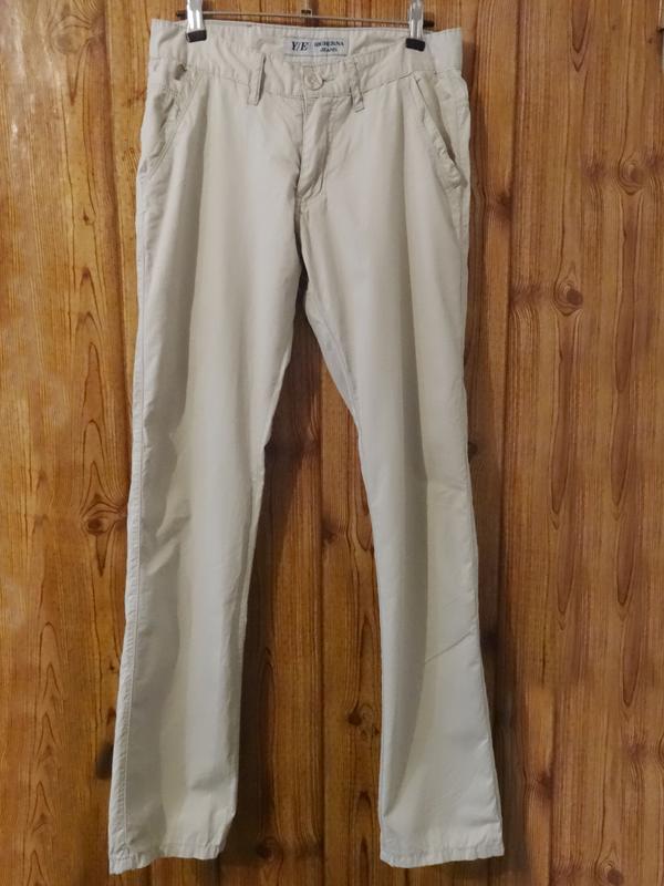 Брюки в идеальном состоянии, тонкие. Размер W:30. Длина по боковому шву 107см. Длина по внутреннему шву 83см. Пот 40см, Поб 51см. 70% COTTON, 30% POLYESTER.