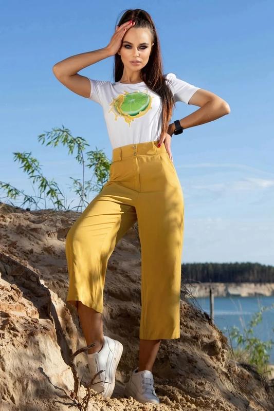 Параметры: Длина шагового шва: S=55 см, M=55 см, L=55 см, XL=55 см Длина по боковому шву от талии: S=83 см, M=83,5 см, L=84 см, XL=85 см Тех. описание: Артикул: 1357.4123 Коллекция: Free style Категория: кантри / повседневные / городские/уличные / классические Сезон: лето Фасон: расклешенный / широкие брюки / с высокой посадкой / с карманами Материал: джинс-коттон Цвет: горчица Фурнитура: пуговицы, потайная молния Вид застежки: пуговицы, потайная молния Конструктивные элементы: карман с отрезным бочком Комплектация: кюлоты Уход за вещами: ручная стирка до 30° Внимание!: В зависимости от поставок элементов декора, за производителем остается право смены деталей на фурнитуре и аксессуарах. Обратите внимание!: Цвет изделия может отличаться, учитывайте цветопередачу камеры и монитора.