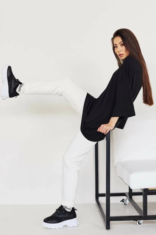 Параметры: Длина шагового шва: S-M=73 см, L-XL=73 см Длина по боковому шву от талии: S-M=99 см, L-XL=100 см Тех. описание: Артикул: 1977.5106 Коллекция: Origin Категория: кэжуал / гламурные / молодежные / спортивные / повседневные / городские/уличные Сезон: весна / осень-зима / демисезон Фасон: с завышенной талией / широкие брюки / с высокой посадкой / с карманами / свободного кроя Материал: трехнитка на флисе Цвет: молоко Декоративные элементы: Пояс и манжеты на резинке 4 см Конструктивные элементы: карманы в боковых швах, цельнокоенный пояс и манжеты Комплектация: брюки Уход за вещами: ручная стирка до 30° Обратите внимание!: Цвет изделия может отличаться, учитывайте цветопередачу камеры и монитора.