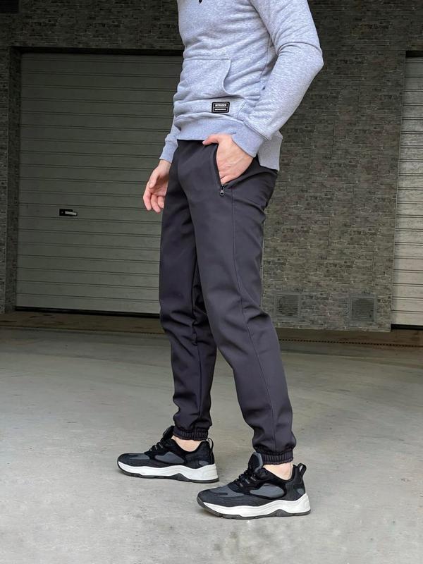 ✅У великій наявності у всіх кольорах та розмірах✅ - Матеріал – Softshell - усередині приємний, м'який мікрофліс - у виробі 2 кишені на змійці - Вгорі виріб регулюється резинкою. - Внизу штани фіксуються з манжетою з гумки Кольори: Сірі Хакі Сині Чорні