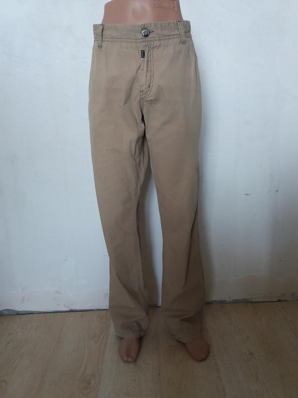Штани з цупкої бавовни фірми "Timezone", р.33, обхват по поясу 88 см, матеріал - 100% бавовна. Ширина штанів по лінії стегон 54,5 см, довжина по бічному шву 108 см. Манекен "худий", тому штани сидять погано. У дуже хорошому стані.