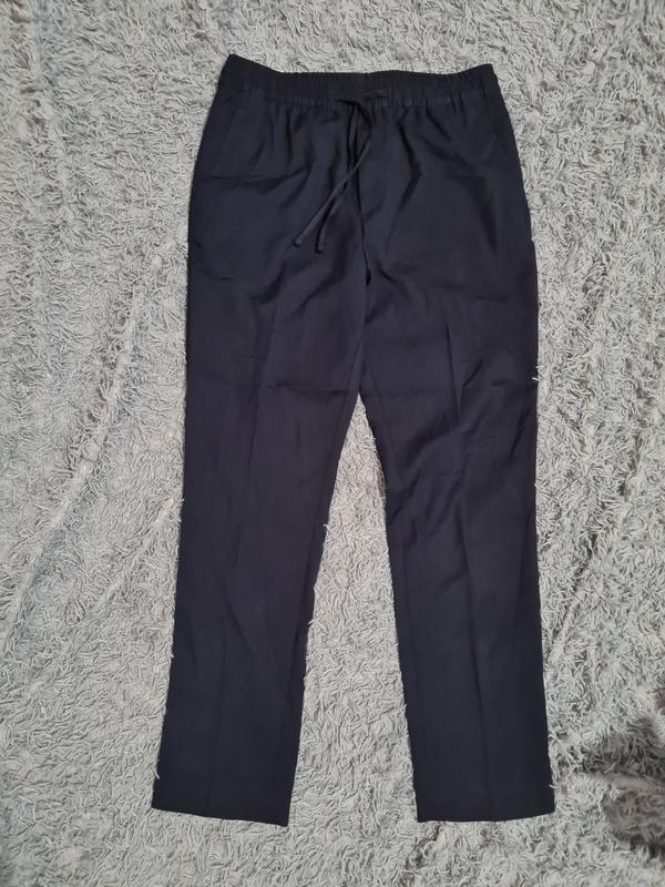 Темно-синие брюки бренда H&M. Они новые куплены до полномасштабного вторжения для съемки