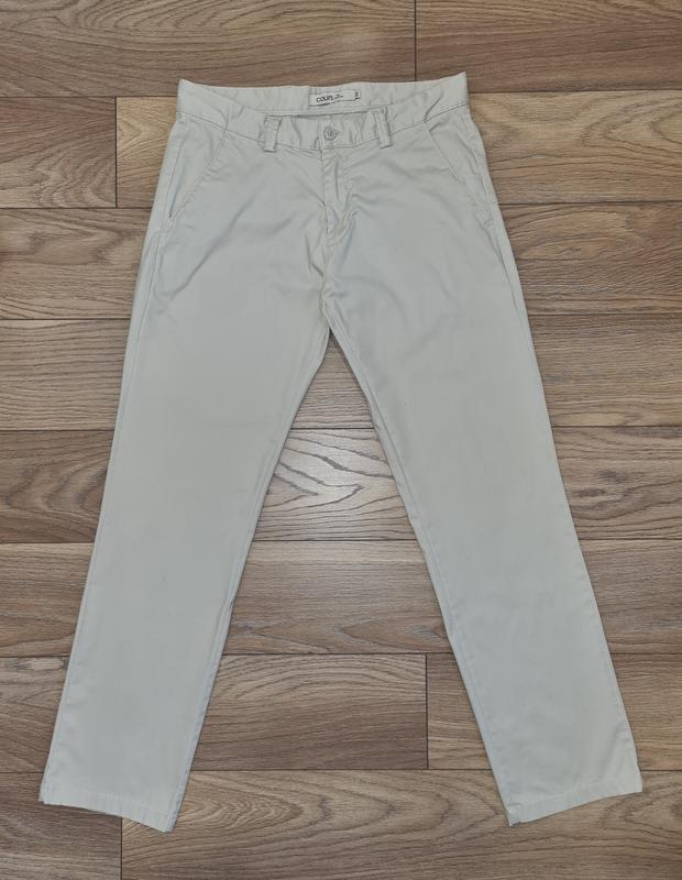 Мужские весенне-летние брюки от бренда Colin's. Цвет - серый. Есть два кармана спереди и два сзада. Размер 32/32 (объем по талии 88 см, по бедрам 106 см, длина 104 см, длина по внутреннему шву 80 см, высота посадки спереди 26 см, высота посадки сзади 38 см). Склад: 97% хлопок, 3% еластан. Состояние отличное, дефектов не имеет.