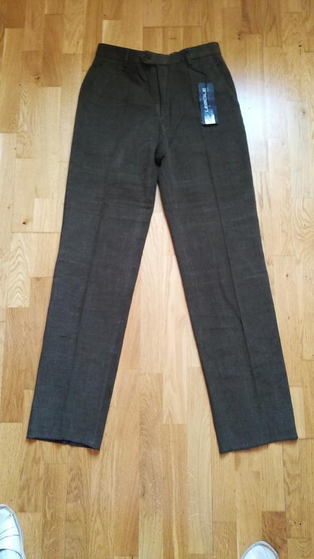 Класические брюки из плотной хлопковой ткани.На холодную погоду.Брендовые.ЗамерыПОТ39-40СМ ПОБ50-51 СМ ДИ ПО БОК ШВУ 113.5см ДИ по внутр шву -89 см высота по гульфику спереду 24.5-25 см сзади 33.5 см.Ширина штанины внизу 21 см ширина штанины в колене 22см ширина штанины в самой широкой точке бедра 28 см.В низу край брюк не подшит .Надо будет подшить.Р ук 6 р.На наш 46.Бренд LEBOLE.