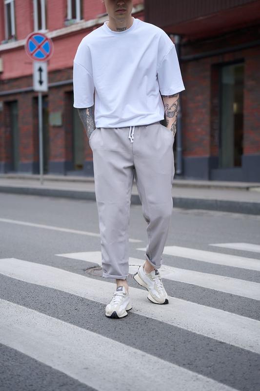 Вільний крій Три кольори : чорний , бежевий , сірий Тканина костюмка : 70% бавовна 30% поліестер Розміри : S M L XL Можна носити без підворотів