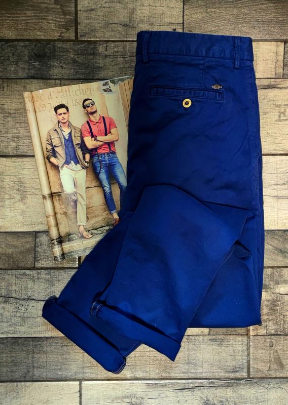 Мужские элегантные члопкоые брюки чиносы massimo dutti в синем цвете размер 31