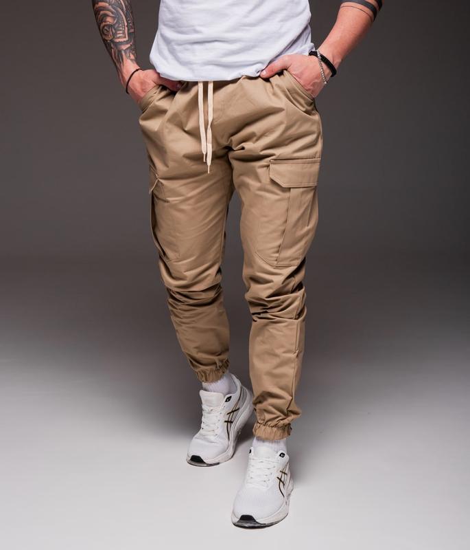 🔶 Артикул: 2125 👖 Брюки Джоггеры с карманами карго бежевые 💵 цена 1500грн 📐 Размеры: S,M,L,XL полномерные 👍 Материал: хлопок 100%. Шесть карманов (два боковых, два задних, и два кармана карго) штанины на манжетах, пояс - резинка + шнурок.