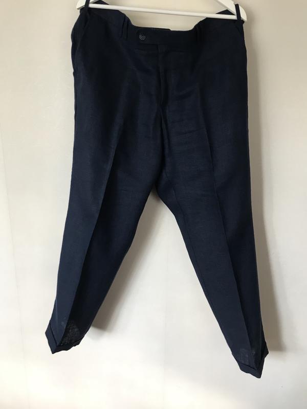 Продаю льняные мужские брюки26и Арбер, темно-синего цвета, р 52-54. Состояние новых. Замеры: пояс 52, бедра 64, длина 103. Для удлинения можно распустить манжет. Цена 1200 гр