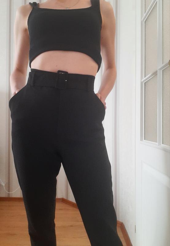 Брюки классические, форма напоминает мом Есть поясок в комплекте Замеры: Талия - 35 Бедра - 42 Длина - 96