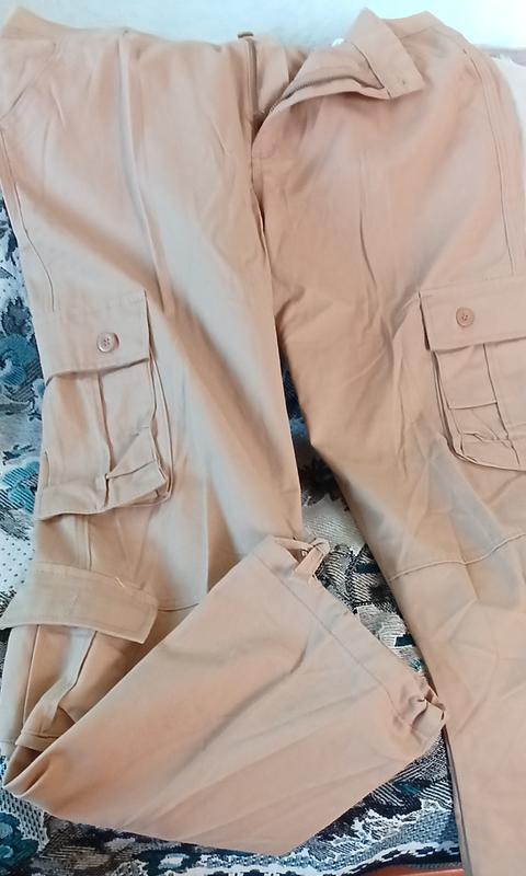 штаны карго беж, 42 размер китай, пояс 54см, длина 108 см, низ штанины 24см, на затяжку. 6 карманов боковых, лето-хлопок.