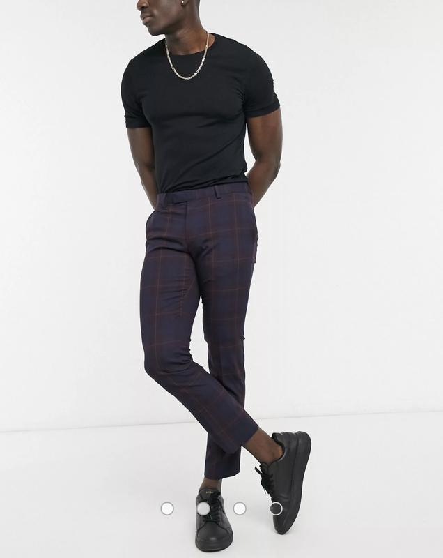 Брюки Moss London slim fit в бордовую клетку Размер:w36 Пояс:98 см по кругу , пот:48 см Посадка:25/39 см Бёдра:120 см Ширина штанины сверху:33 см Длина:96/72 см Кармнов :4 Состав:69% полиестер 29% вискоза 2% эластан