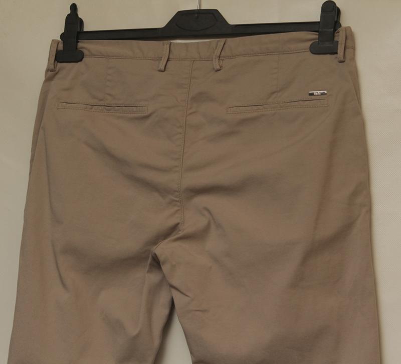 Брюки из хлопка и лайкры скрепленной 3% плайкры от Hugo Boss. Приятная, фактурная ткань. стрелки. Фурнитура YKK, сталь. Минеральные пуговки.Зауженый силуэт. Полу Обхват Талии - 42 Длинна - 109 Выход - 18 Длинна по внутреннему шву - 84 Бедра по низу молнии, и по точке схождения в паху - 51, 54 Передний и задний посадочный швы - 26, 35