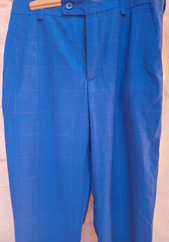 Хорошие брюки, состояние новых. Темно синий цвет с полосками Длина от пояса 105 см, талия 36см Бедра 48 от шва до шва.