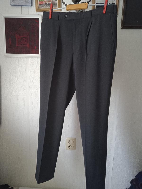 Брюкі чоловічі в хорошому стані, обхват по поясу86см, обхват стегон 113см, посадка спереду 30см, посадка ззаду 45см, шаг 76см, довжина 102см, ширина штанини внизу 22см, по боках два кармани, ззаду карман.