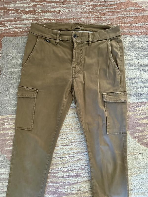 Чоловічі коричневі стильні штани ГЕС оригінал, з карманами, стильно виглядають розмір 31. Пояс 40см, довжина 97 см, крок 73см. Від вікна засвічує, в живу однотонний коричневий колір.
