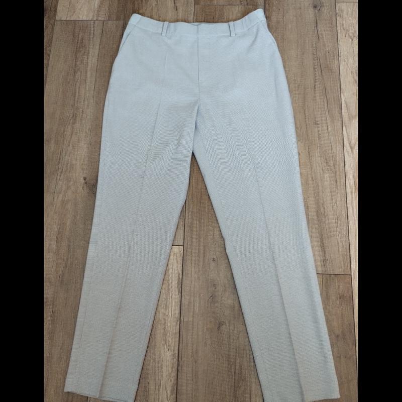Укороченные, повседневные брюки японского бренда Uniqlo, из смесовой ткани, в размере М. Сзади на резинке, спереди - пояс, идут без молнии, сбоку и сзади - карманы, имеются шлевки, чтобы продеть ремень. Покупались на официальном сайте. Состояние отличное, носились мало, т.к. вещей имею много. Соответствуют своему размеру, замеры приложены. Причина продажи - разбор гардероба. Если остались вопросы - с удовольствием отвечу.