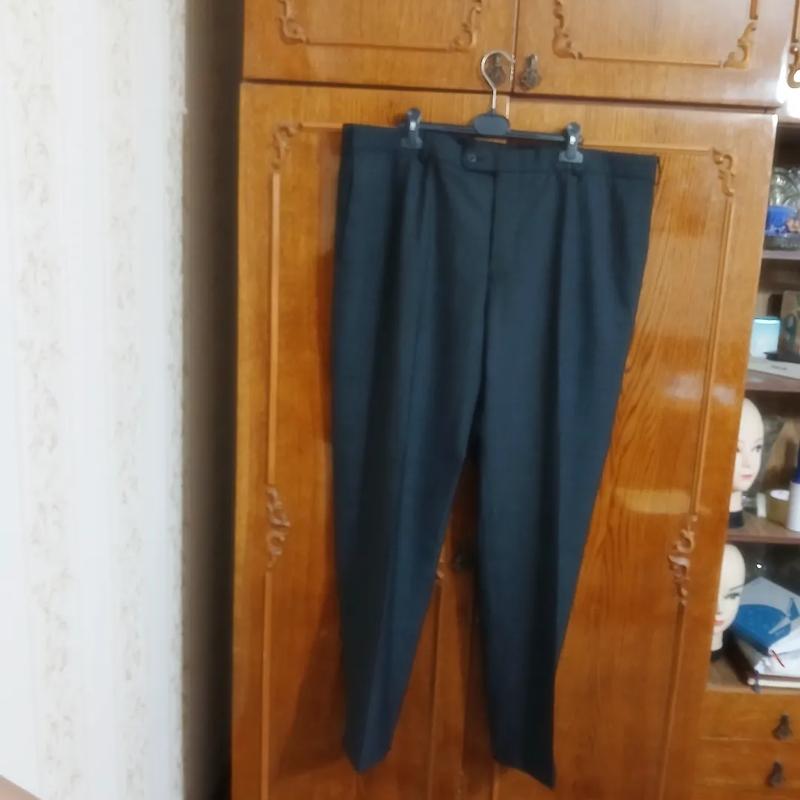 Брюки брендовые по составу шерсть элостан полистер с боковыми и задними рабочими карманами по цвету графит с чёрным меланжем костюмная ткань тёплая на 🍂 осень Для.108 Шаг 80. От 108 Об 124 П31/44 Штанина по в 31 к26 н 22👍