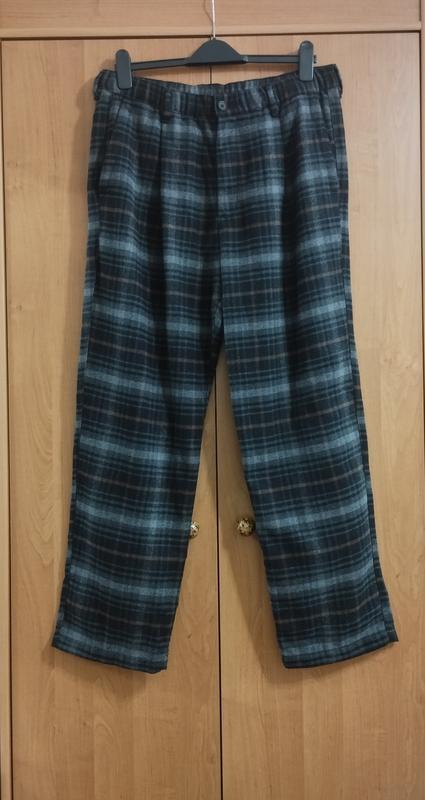 Штаны H&M Relaxed Fit (крой Relaxed Fit не сковывает движения, обеспечивает комфорт, подходит людям активно двигающимся в течение дня) в черно-серую клетку. Состав - 75% полиэстер, 22% шерсть, 2% полиамид, 1% акрил. По бокам карманы, сзади карман, пояс немного тянется (и внутри есть шнурки для утяжки), спереди складки. Штаны мягкие, теплые, уютные, практически не мнутся. Размер указан М, ориентируйтесь на замеры: - пояс 43/49 см - бедра 59 см - посадка 33/44 см - длина 105/74 см - штанина 35/22 см **Просьба внимательно соотносить замеры с замерами своих вещей В отличном состоянии, легкое б/у, без дефектов. Смотрите пожалуйста внимательно фото, их делали для вас и они являются частью описания товара. Смотрите и другие мои объявления, есть еще много интересного для всей семьи! --------------------------------------------------------------------- Доставка (подробнее о способах доставки смотрите в разделе "Обо мне" 4081