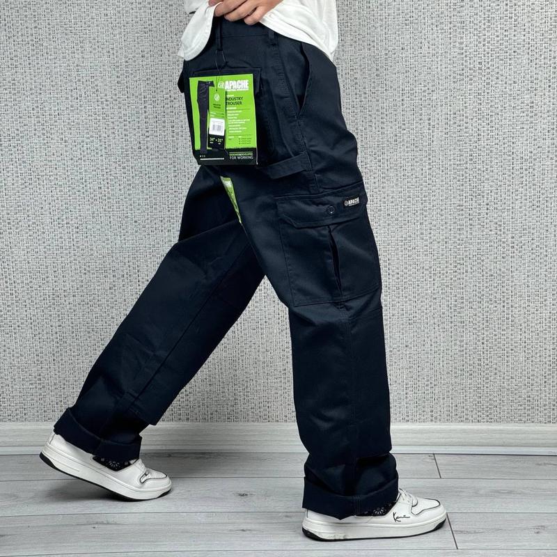 Apache Industry Pants • Размер: 34 • Замеры (сверяйте!): Полупояс - 44 см Полуобхват бедер - 59 см Дли по боковому шву - 110 см Ширина по низу - 23 см • Стан: на фото. Новые. Фактически бюджетные дикесы, идентичные абсолютно. Темно-синие. Цвет равномерный, камера делает разводы.