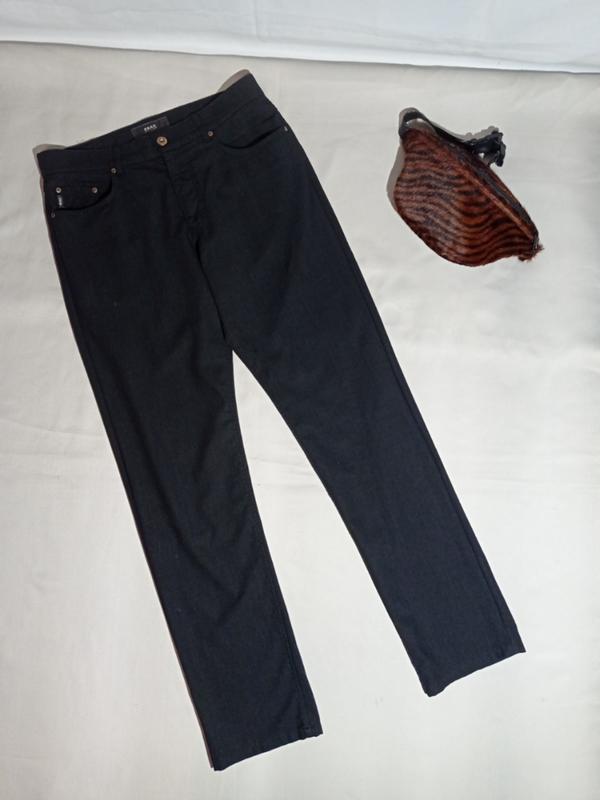 пот 44,поб 50, довжина 110, кроковий 84, півохват штанини зверху 31, півохват штанини знизу 19, посадка перед 28, посадка ззаду 38.Брюки прекрасно підходить для жінок, тому може бути унісекс.Бірки зі складом немає,на сайті виробника вказано вовну, поліестр і еластан.Є малопомітний некритичний ньюанс на останньому фото, що враховано у ціні.