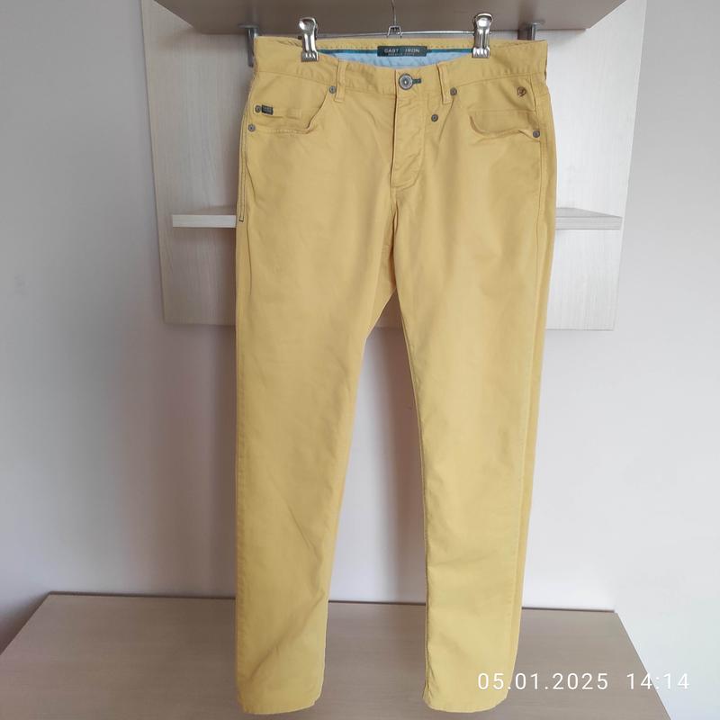 Брюки известного голандского бренда Cast Iron. На болях.Классический джинсовый крой. Отличное состояние. 97% cotton, 3% elastan. Чудово сидять. Цвет ярко желтый, охра. ПОТ43, ПОБ52, ЗШ110, низ 18