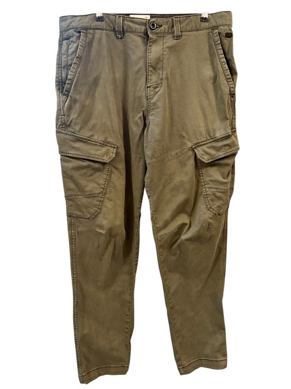 Качественные карго брюки. Фурнитура YKK, 7 карманов, сзади штанины присборенные резинками, спереди в виде обычных шильный мягкий материал 98/2 котон/эластан. Стан 10/10 Размер М ( может на L) пояс 44 стегна 55 холоша верх 30 холоша низ 17 длина 105