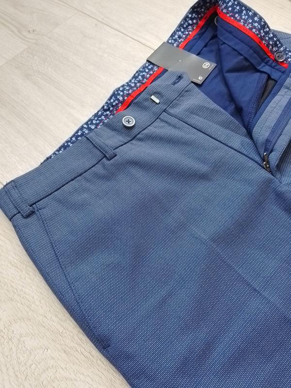 Мужские брюки/брюки р. 48 (M). Модель tailored fit (уженого кроя). Цвет - синий. Состав: 77% полиэстер, 22% шерсть, 1% эластан. - Полуобхват пояса - 42 см, - Полуобхват бедер - 51 см, тянется до 53 см - Посадка перед - 27 см - Посадка зад - 41 см - Крок - 80 см, - Полная длина - 105 см, - Напівобхват штанини внизу - 18 см.