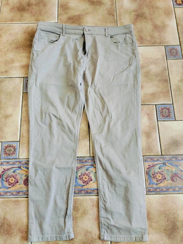 В идеальном состоянии джинсовые брюки на мужчину 56р. Длина штанины с поясом до низа 108см, длина с поясом до памперса 41см, длина шага 77см, бедра 62см, талия 54см, ширина низа штанины 19см. Коттон с легким стрейчем.