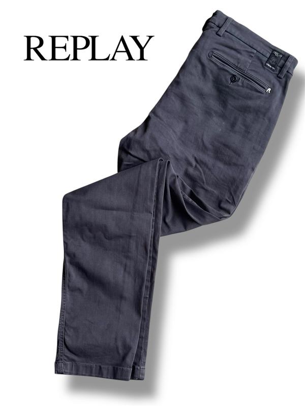 Брюки чинос от Replay, mod. Zeumar Hyperflex, плотный мягкий красиво тягучий коттон. Графитового цвета. Состояние новых вещей. Размер 36 пояс 46 стегна 55 холоша верх 31 холоша низ 18 длина 108